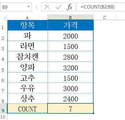 셀의 개수와 숫자의 개수를 셀 때 사용합니다.