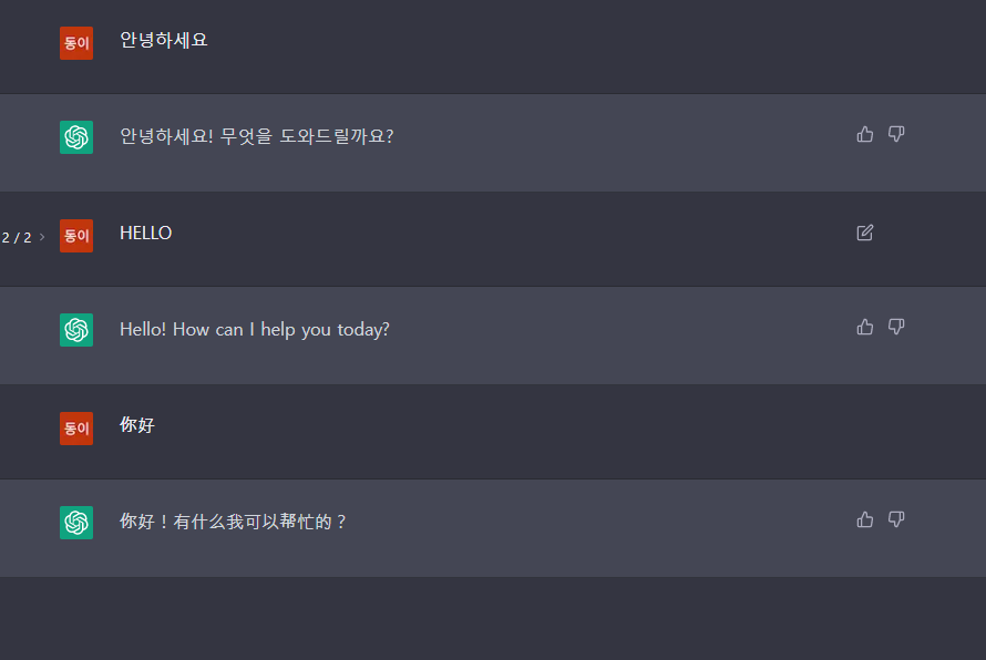 한국어, 영어, 중국어로 인사를 하니 각자의 언어로 대답을 해주는 것을 볼 수 있습니다. 똑똑한데요... 그럼 몇 가지 테스트를 더 해 보겠습니다.