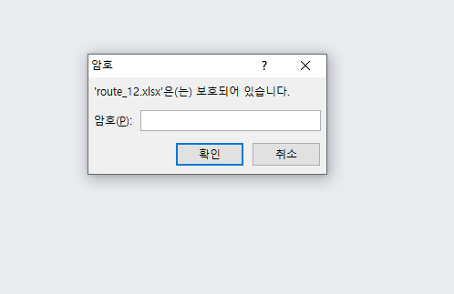 오픈과 동시에 암호를 입력하라고 나옵니다. 본인이 만든 엑셀 문서를 암호를 설정할 수 있을 겁니다.