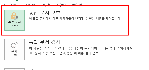 이 통합 문서에서 다른 사용자들이 변경할 수 있는 내용을 제어합니다.라고 변경되면서 제어가 가능해집니다.