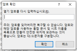 열기 암호 및 쓰기 암호를 다시 입력하라고 나옵니다. 그럼 열어 볼까요