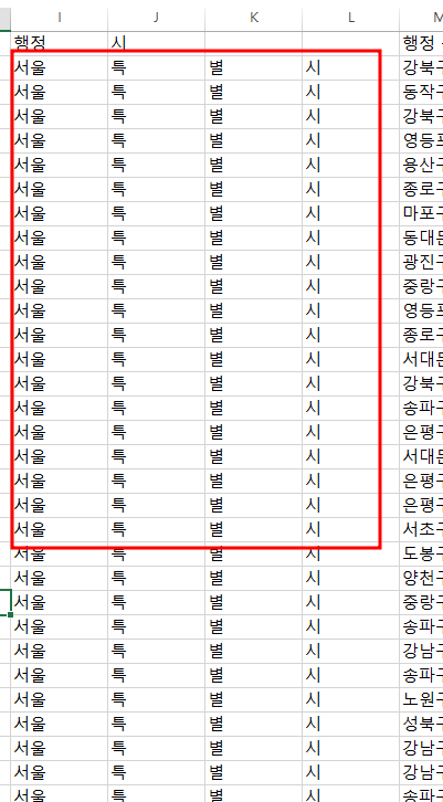 행정 시에 서울특별시라고 있습니다. 우리는 여기서 일정한 너비로 서울과 특별시를 분리해 보겠습니다.