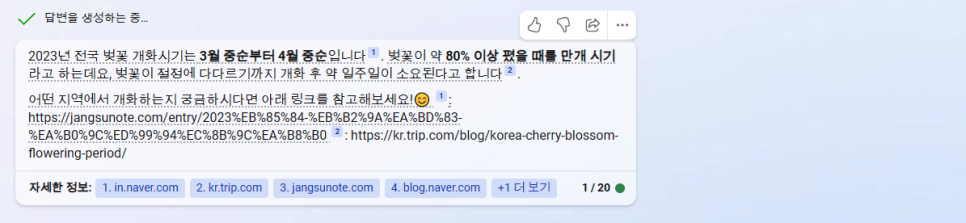 trip 닷컴으로 연결이 되면서 2023년 전국 벚꽃 개화시기 일정이 나오네요... 생각한 것보다는 똑똑합니다.