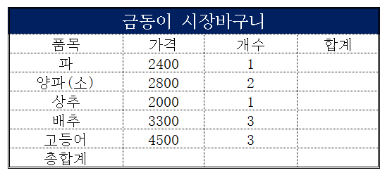 ex) 금동이 시장바구니라는 파일에 대해서 계산을 해보겠습니다.