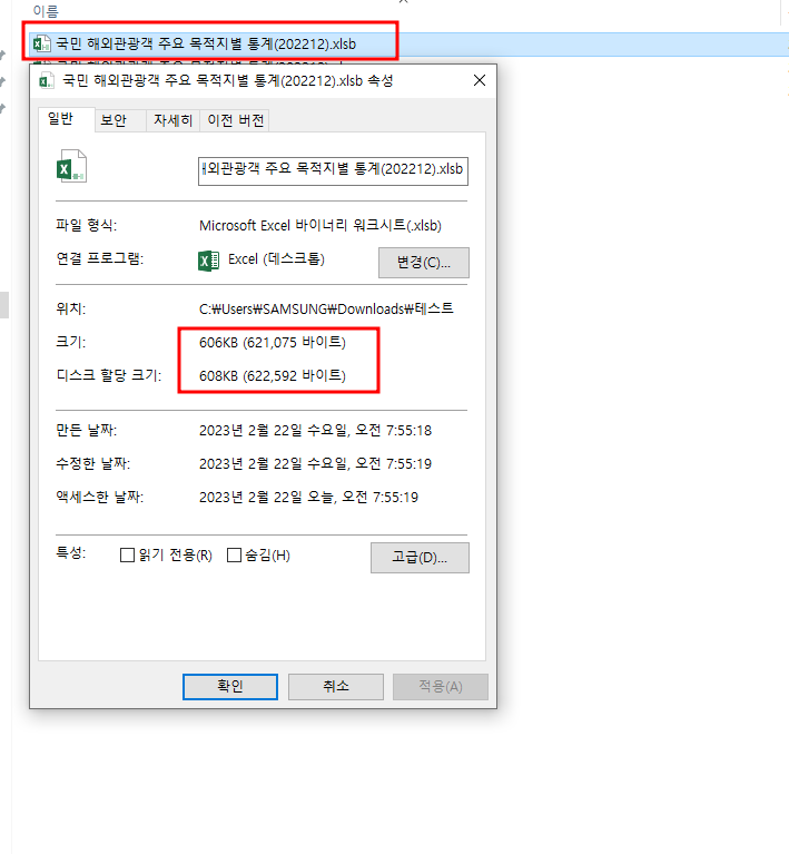 그럼 파일 크기가 어느 정도인지 알아보겠습니다.