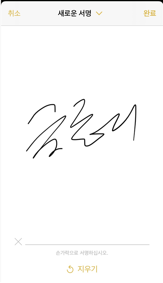 그럼 서명을 손가락으로 서명하십시오가 나오면서, 서명을 하면 됩니다.