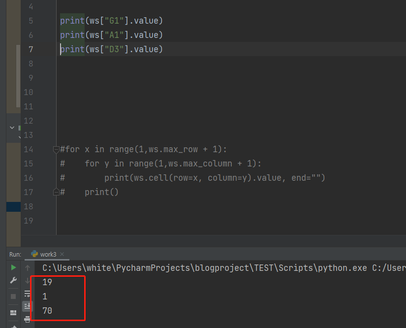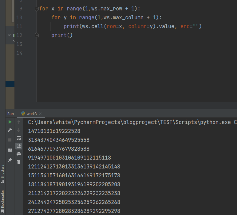 for 반복문을 통해서 셀에 있는 내용을 불러와지는 것을 볼 수 있습니다. 반복문은 저번에 배웟듯이 충분히 알 수 있을 거라 따로 설명은 안 드리겠습니다.
