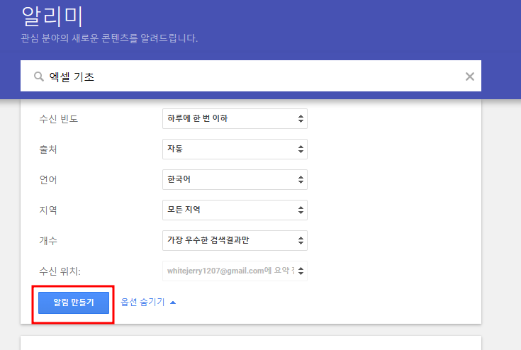 하지만 나는 코딩도 모르겠고 정보는 받아보고 싶으신 분들을 위해서 구글 알리미를 추천하고 싶습니다.