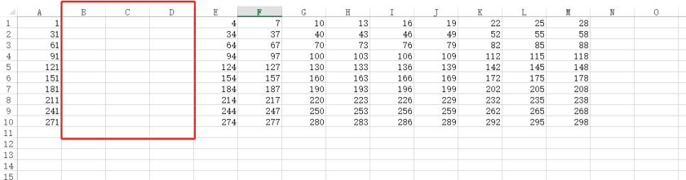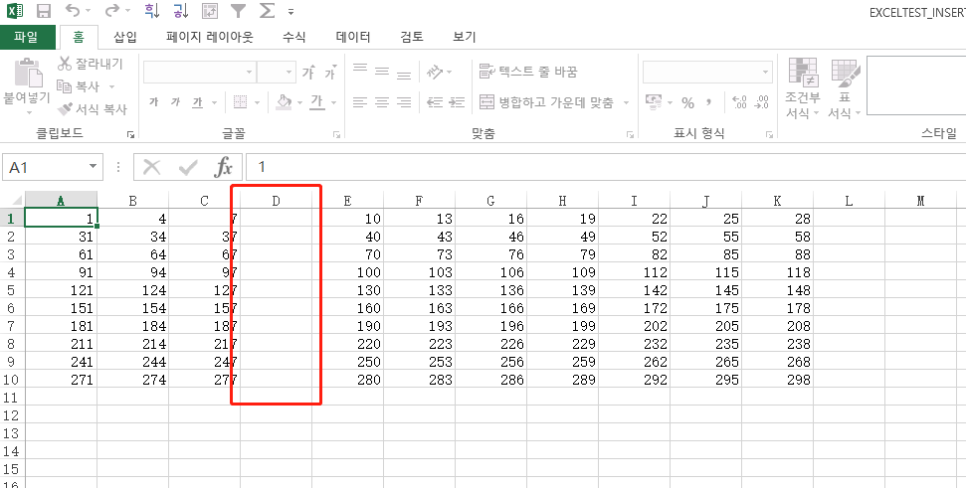 2번째 열인 B에서 시작해서 3개까지 즉 D열까지 빈칸이 삽입된 것을 볼 수 있습니다. 어렵지 않죠