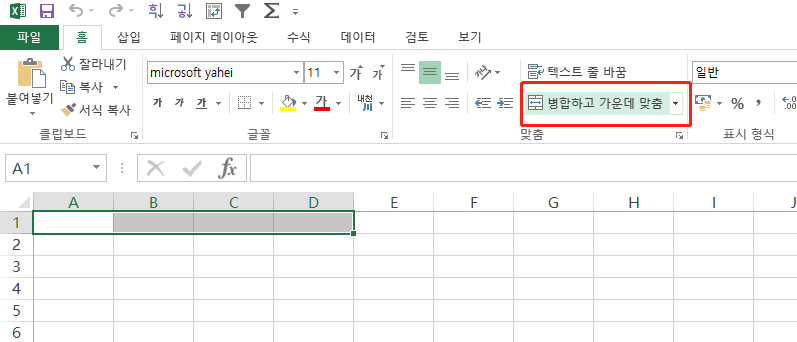 엑셀에서 셀 병합하기를 알려드리겠습니다.