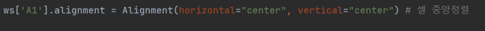 alignment를 이용해서 A1셀을 horizontal, vertical, 가로 세로를 center로 맞쳐줍니다.