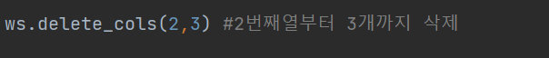 4. 이번에는 열 삭제에 대해서 알아보겠습니다. ROWS를 COLS로만 바꿔주면 손쉽게 됩니다.