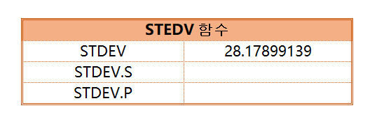 표본집단의 표준편차는 28.17899139라는 표준편차 값이 나왔습니다.
