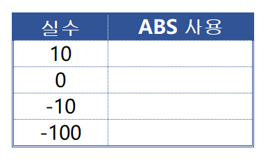 = ABS(셀) 또는 ABS(실제 입력값)