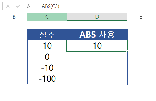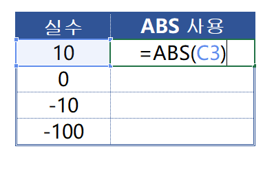 =ABS(C3) , C3 셀에 있는 값을 ABS로 변환을 해 보겠습니다.